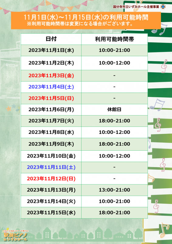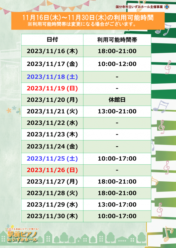 | 主催 | 国分寺市 国分寺市立いずみホール指定管理者 株式会社ケイミックスパブリックビジネス |