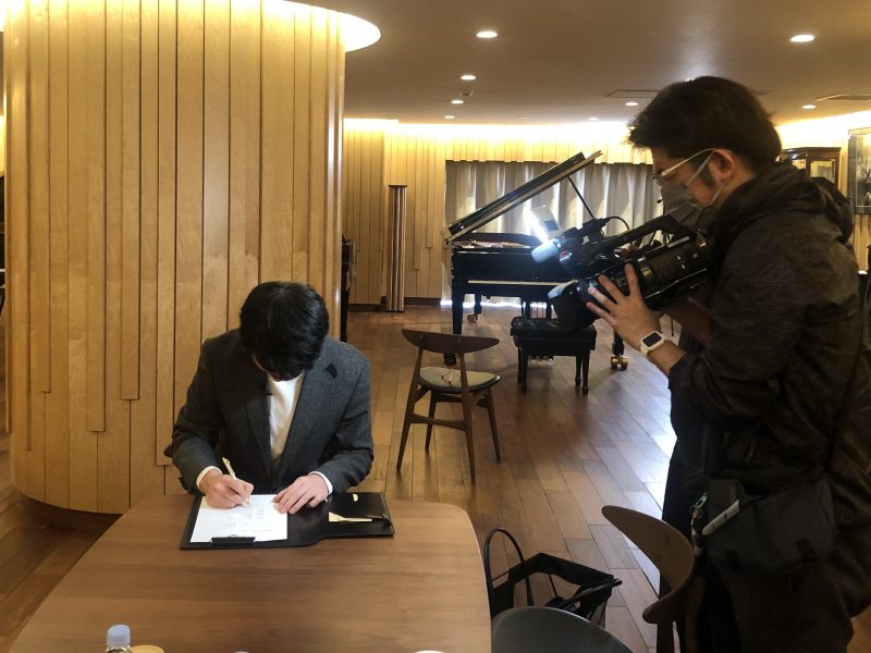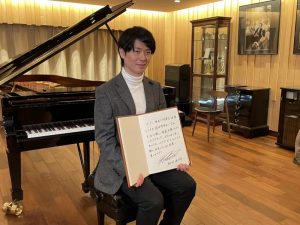 先日、国分寺市観光大使でピアニストの福間洸太朗さんに新しいスタインウェイピアノを選定していただきました。新しいピアノは1月からご利用いただけます。