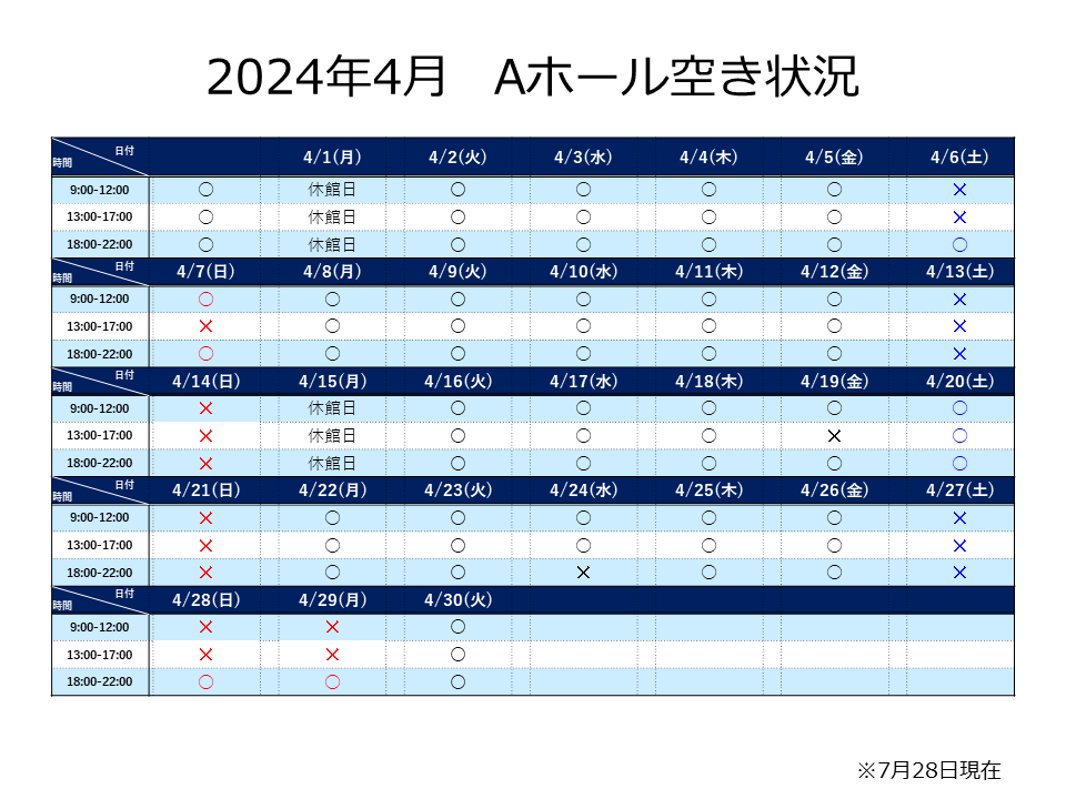 Aホール 2024年4月分の先着予約につきまして、