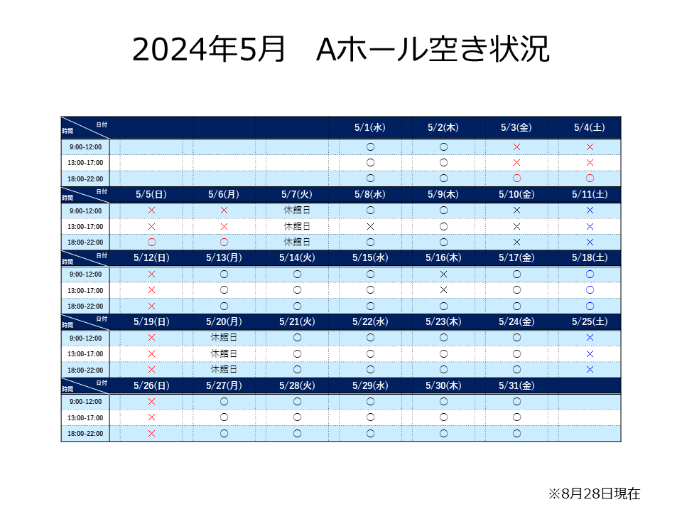 ○使用状況(8月28日時点):下記カレンダーをご参照ください。