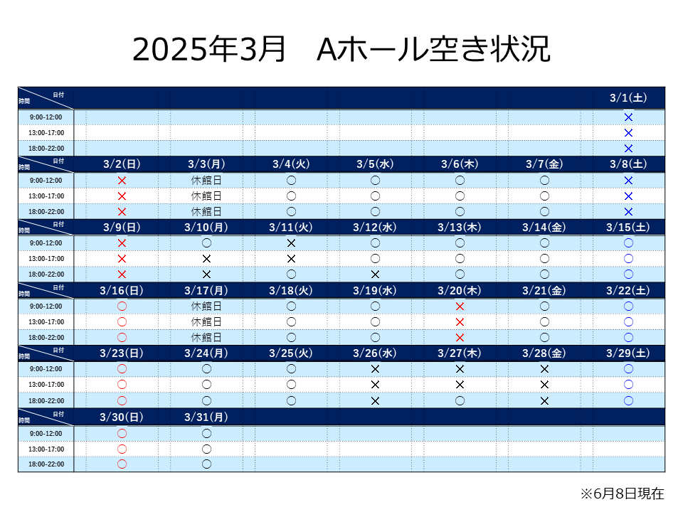 Aホール 2025年3月分の抽選申込につきまして、下記の通りご案内いたします。